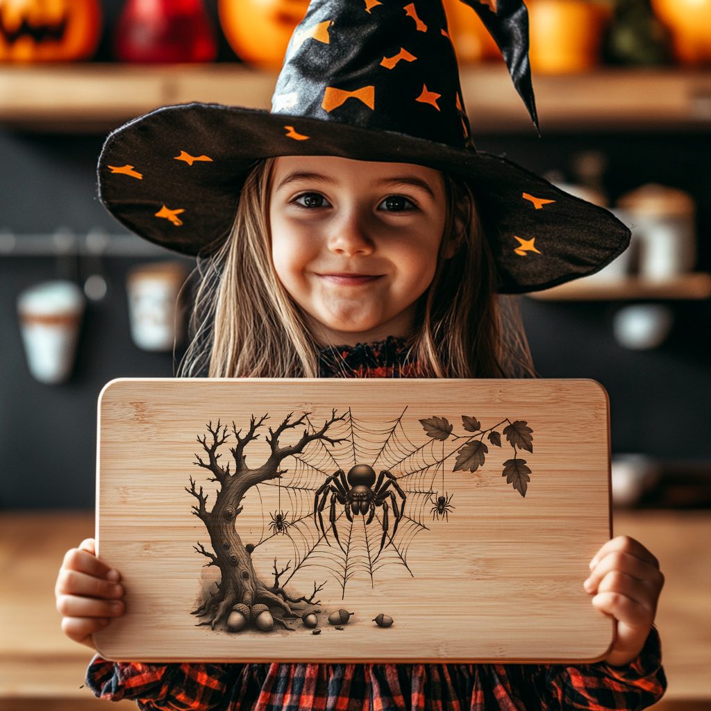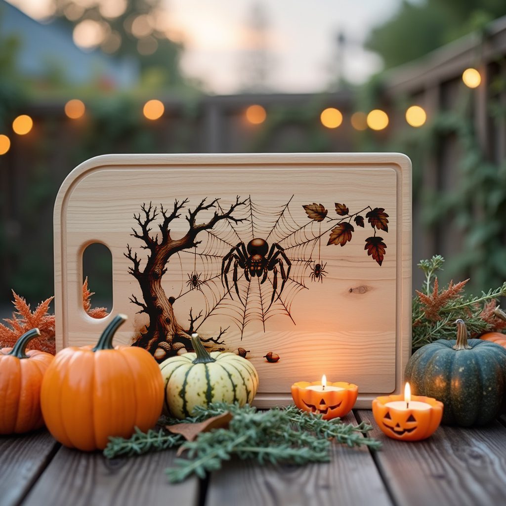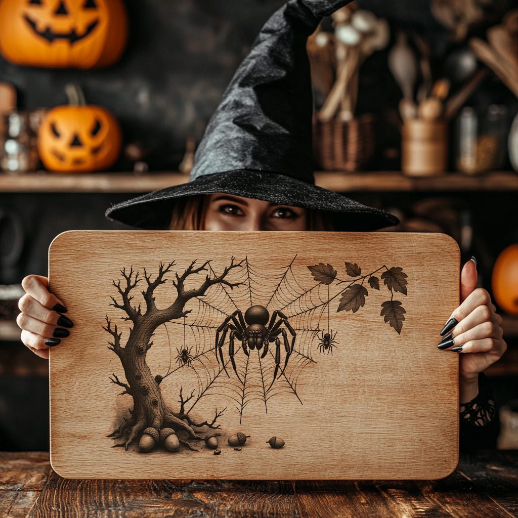 Transform your Halloween charcuterie boards with our Sinister Spider Web Laser Engraving File. This striking design instantly adds a spooky touch, captivating guests and elevating your festive décor.