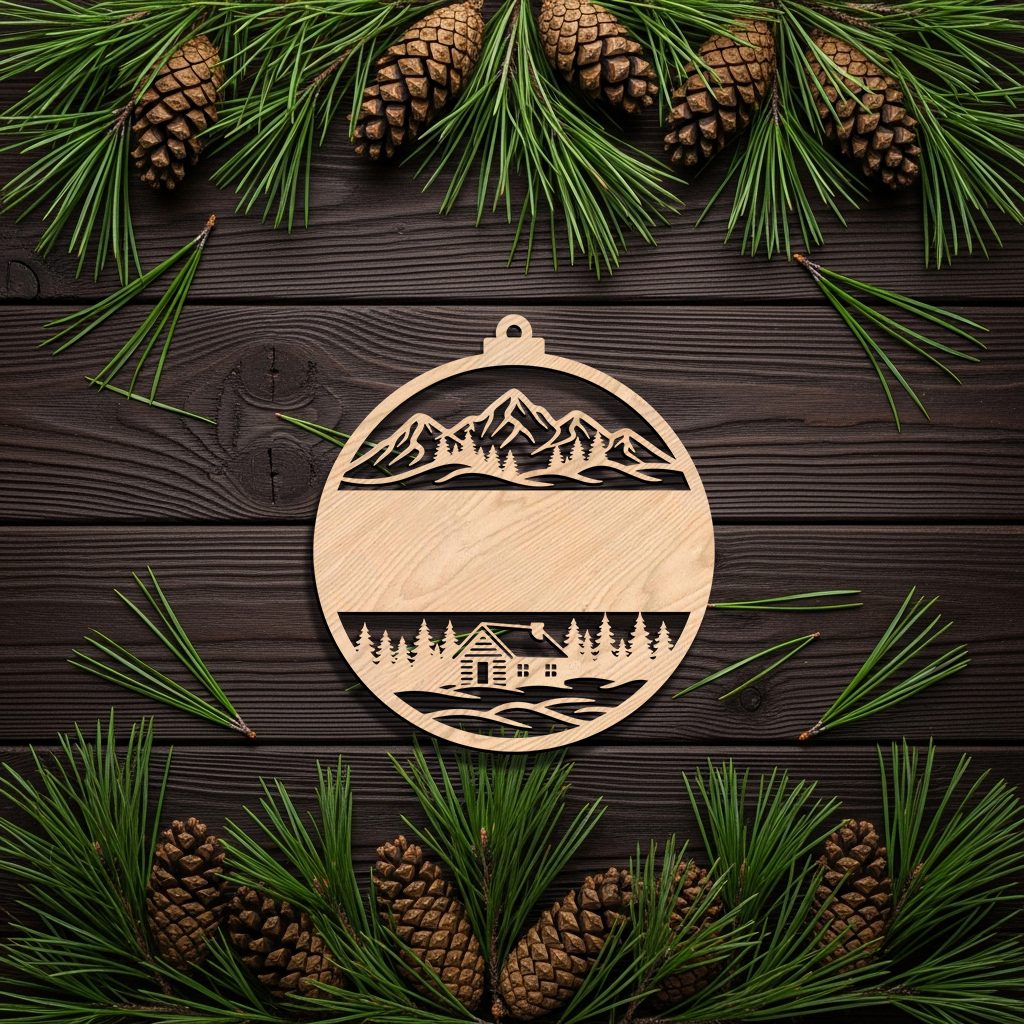 Laser Cut Mountain Scene Ornament, Personalized Christmas Holiday Decor