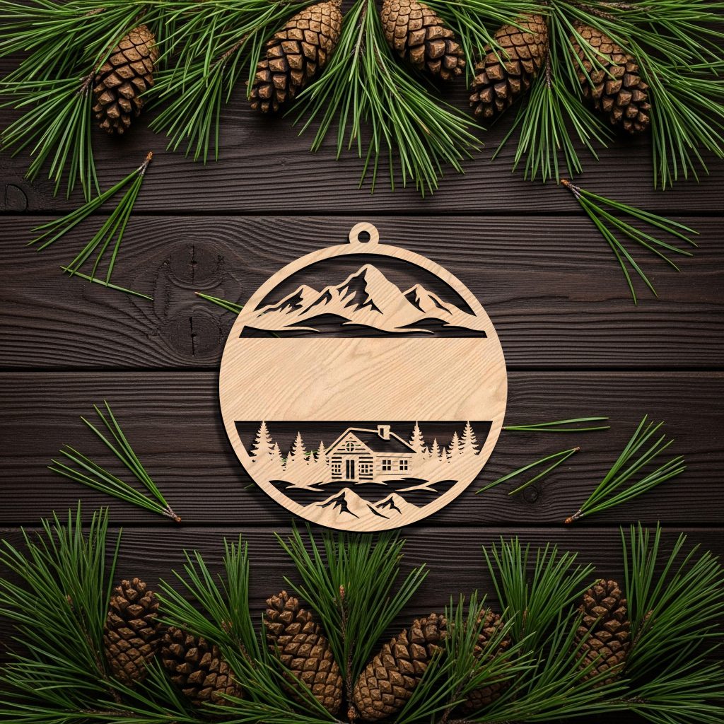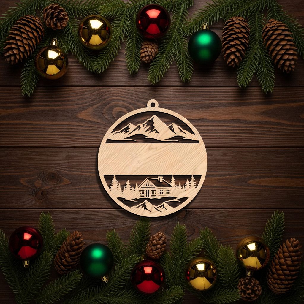 Mountain Ornament Christmas Design, Personalized Circular Holiday Decoration