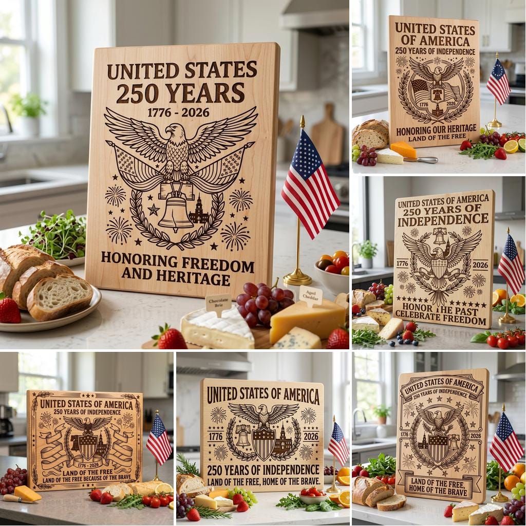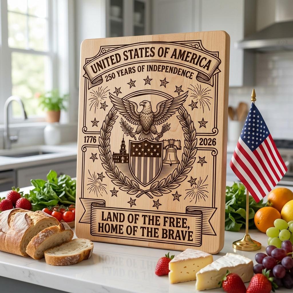 Celebrate 250 years of American pride with our exclusive patriotic design collection, created especially for commemorative boards and home décor. Bold eagles, flags, and historic motifs transform any plain chopping or serving board into a timeless heirloom that honors the spirit of the USA.