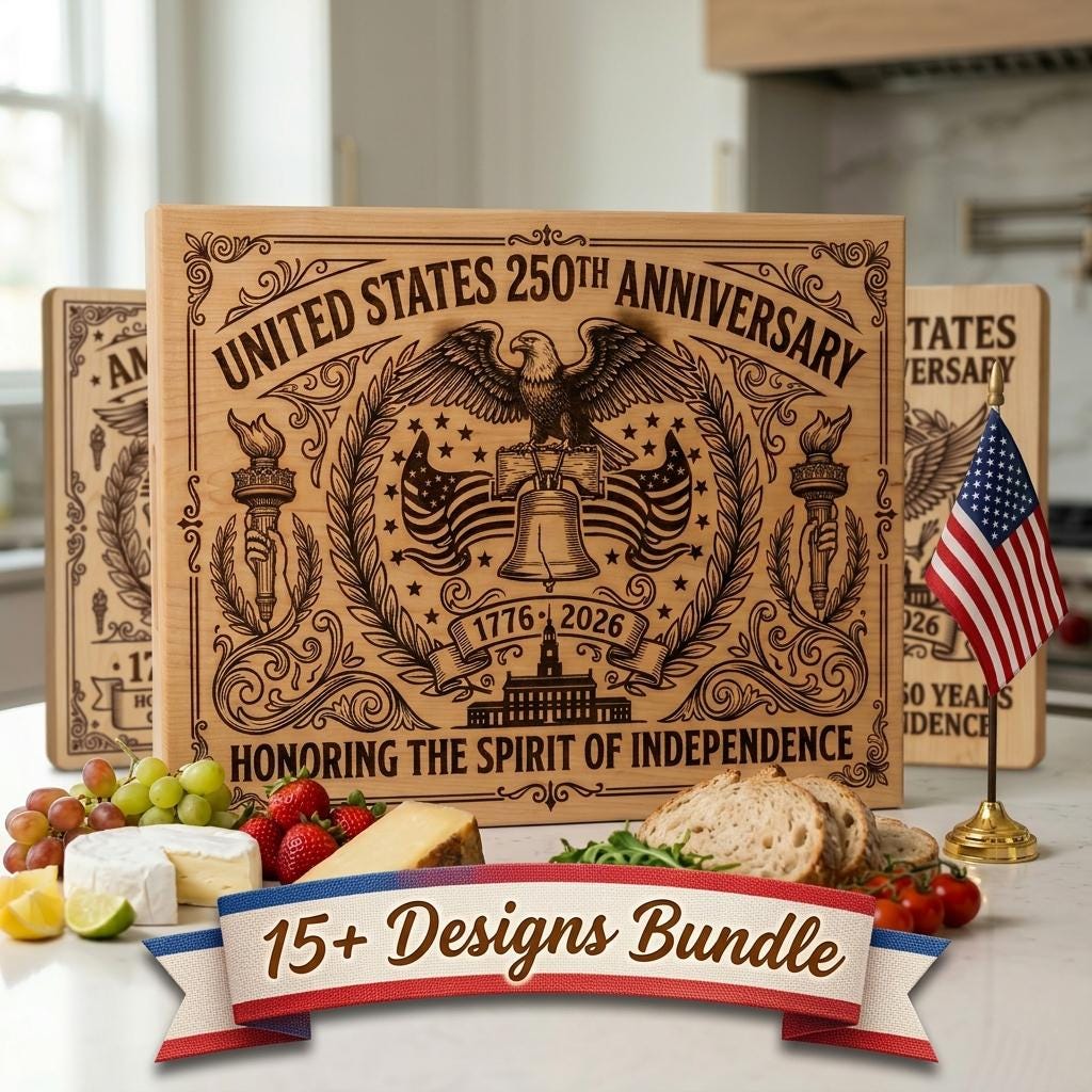 Celebrate America’s 250th in style with this exclusive collection of patriotic engraving designs. From bold eagles to timeless flags, every element showcases classic Americana flair, perfect for commemorative boards, plaques, and home décor that customers will proudly display year after year.