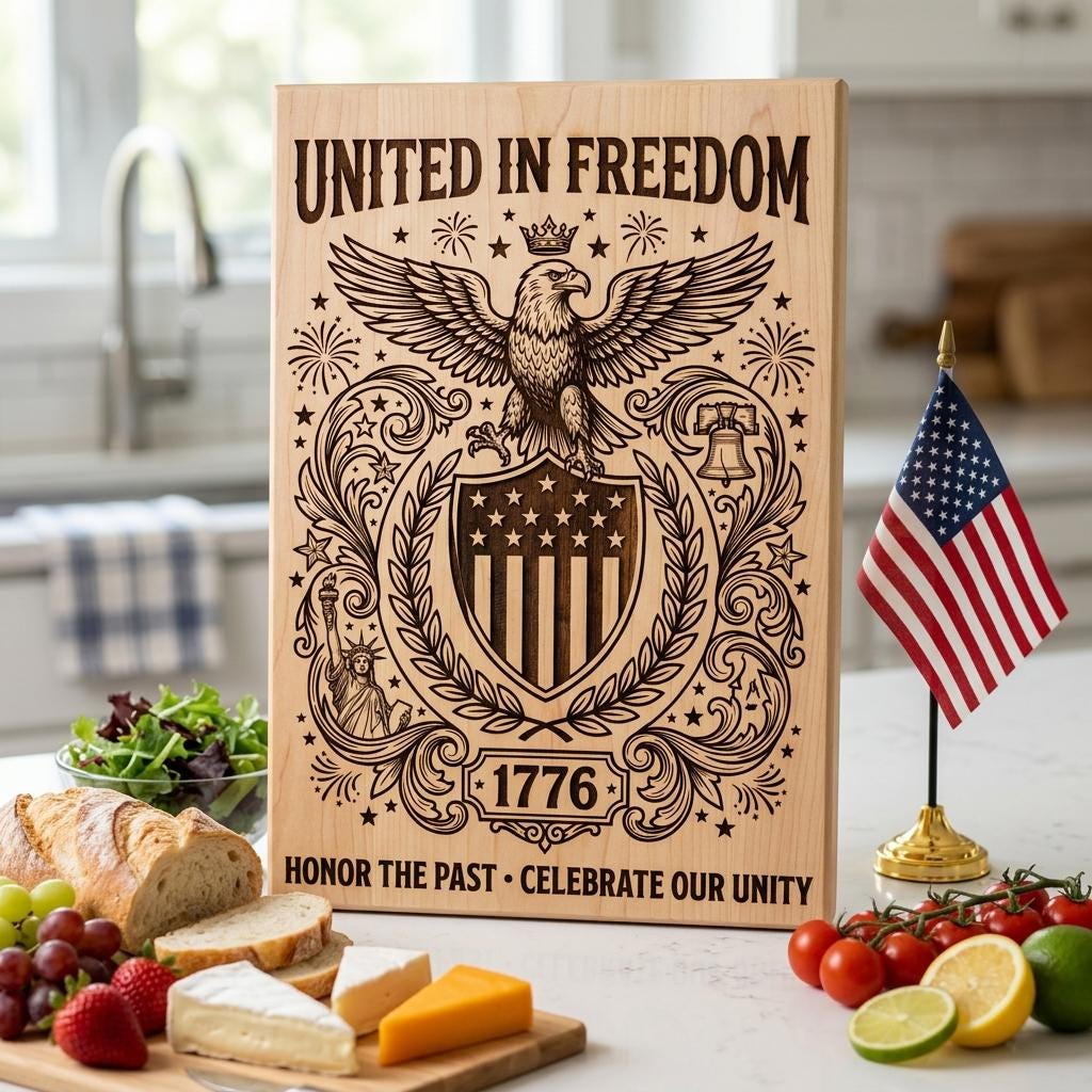 Celebrate the 250th Anniversary with a bold patriotic engraving design featuring a majestic eagle, stars, and stripes. This commemorative artwork transforms boards, plaques, and gifts into heirloom keepsakes. Ideal for makers wanting a premium Americana graphic that instantly elevates any project with professional detail and historic flair.