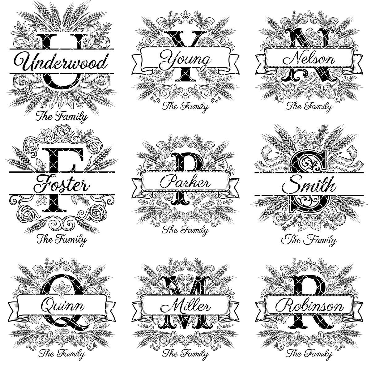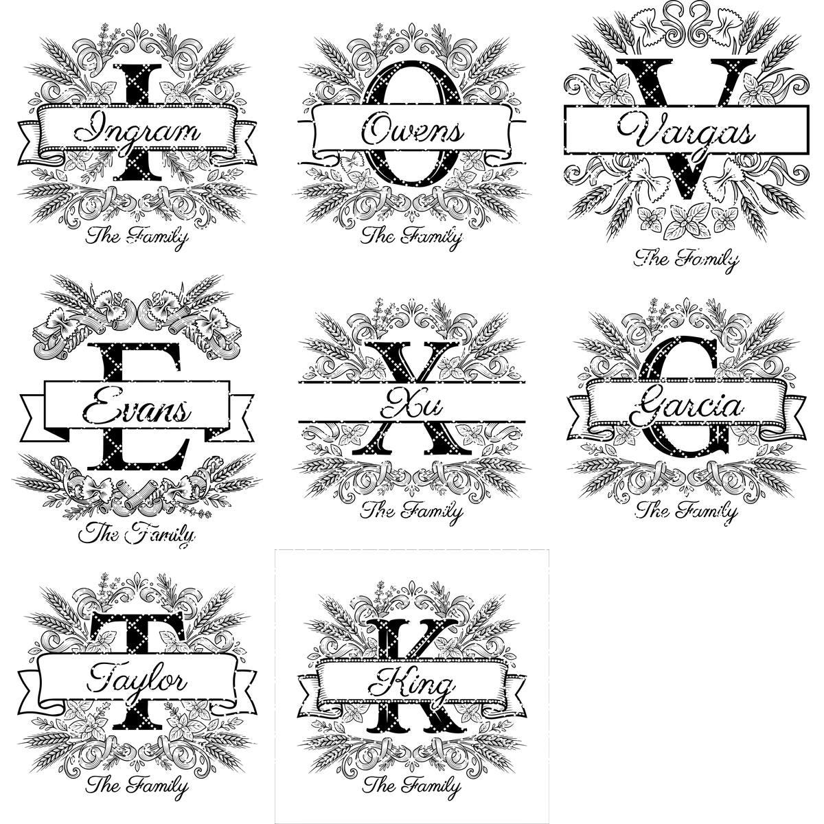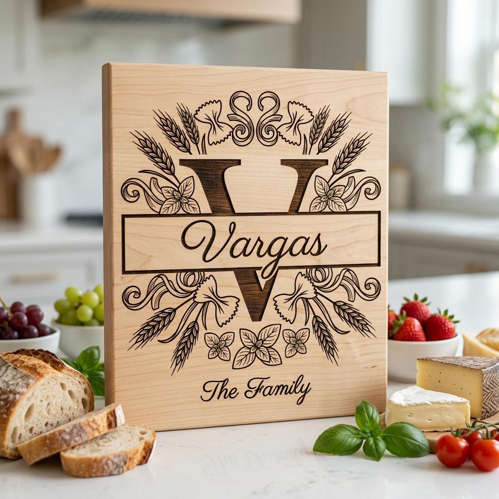 Elevate your kitchen with our Italian-themed monogram bundle, perfect for personalized board engraving. Featuring a beautiful pasta wheat motif, this design celebrates family and authentic culinary traditions in style.
