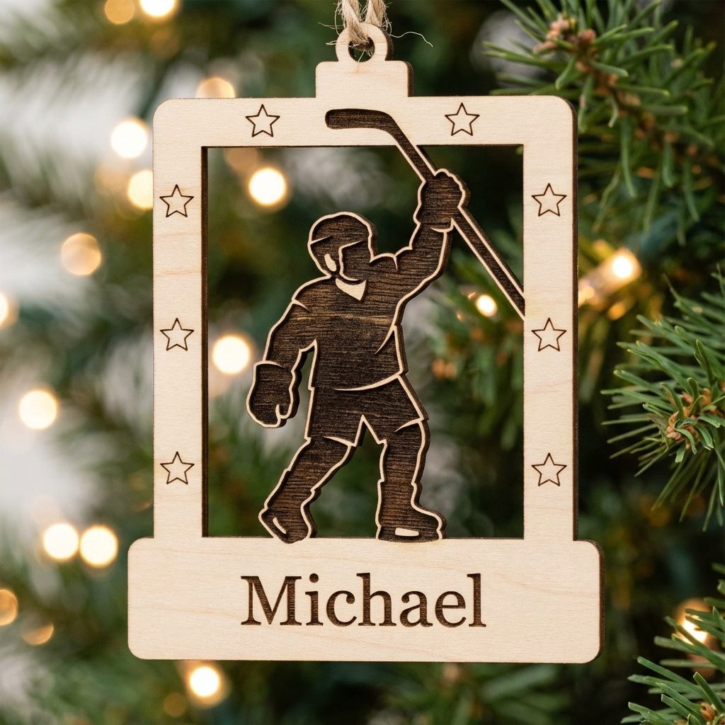 Personalized Hockey Ornament, Custom Name Ice Hockey Player Christmas Celebration