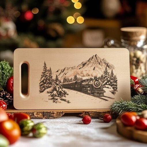 Designed for laser engraving, it transforms any charcuterie, chopping, or cutting board into a festive masterpiece. Experience the thrill of the Polar Express's journey as it glides over snow-covered landscapes, capturing the essence of the beloved holiday tale. Elevate your Christmas gatherings with this enchanting design, perfect for creating personalized gifts, charcuterie spreads, or festive home decor.